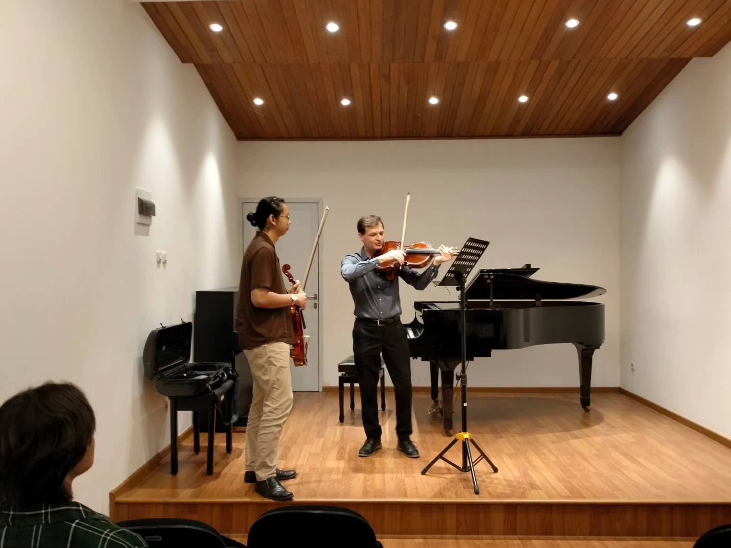 In his visit this time, Michael Hall took the time to hone young Indonesian violists in his master class at the Jakarta Conservatory of Music. Let’s listen to his discussion, dear string instrumentalists. There is no entrance fee for observers.